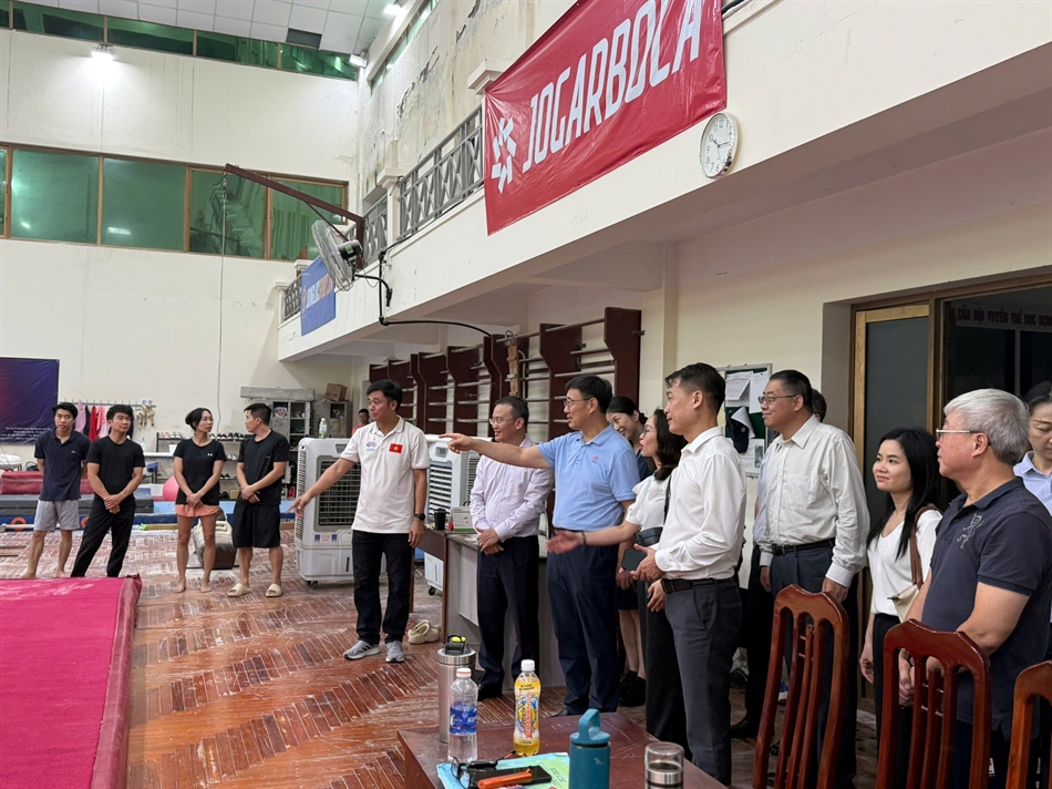 Đoàn tới thăm đội tuyển Thể dục dụng cụ