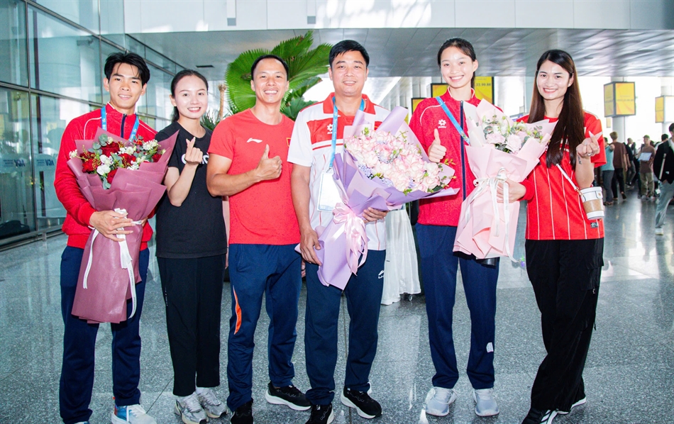 Đón đoàn tại sân bay, ông Hoàng Quốc Vinh – Trưởng phòng Thể thao thành tích cao, Cục Thể dục Thể thao Việt Nam đã gửi lời chúc mừng và biểu dương tinh thần thi đấu nỗ lực của các VĐV.