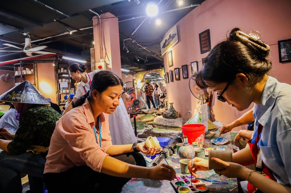 Tại đây, đoàn đã được hướng dẫn viên giới thiệu về lịch sử làng nghề Việt- nơi trưng bày các sản phẩm tinh hoa của Bát Tràng cùng những sản phẩm thủ công mỹ nghệ tiêu biểu từ nhiều vùng miền khác trong cả nước. Các đại biểu được trực tiếp trải nghiệm chương trình “Tôi làm nghệ nhân” – hóa thân thành người thợ gốm, tự tay nặn và vẽ các sản phẩm gốm mang dấu ấn riêng.