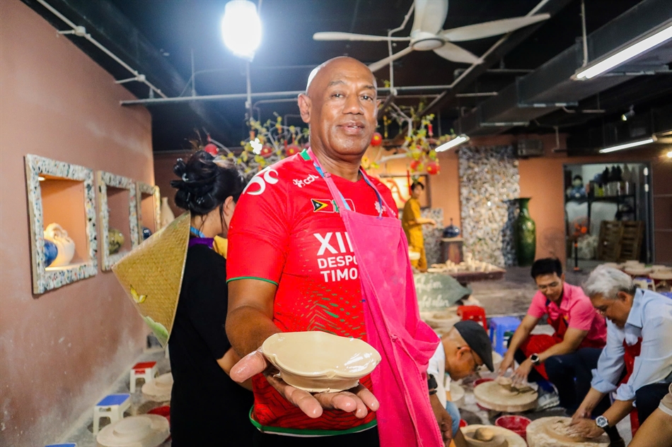 Chiều ngày 14/10, trong khuôn khổ các hoạt động bên lề Hội nghị Quan chức cao cấp ASEAN về Thể thao lần thứ 16 (SOMS 16), các đại biểu đến từ các quốc gia thành viên ASEAN đã có chuyến tham quan và trải nghiệm thực tế tại làng gốm Bát Tràng (Hà Nội) – một trong những làng nghề truyền thống lâu đời, mang đậm bản sắc văn hóa Việt Nam.
