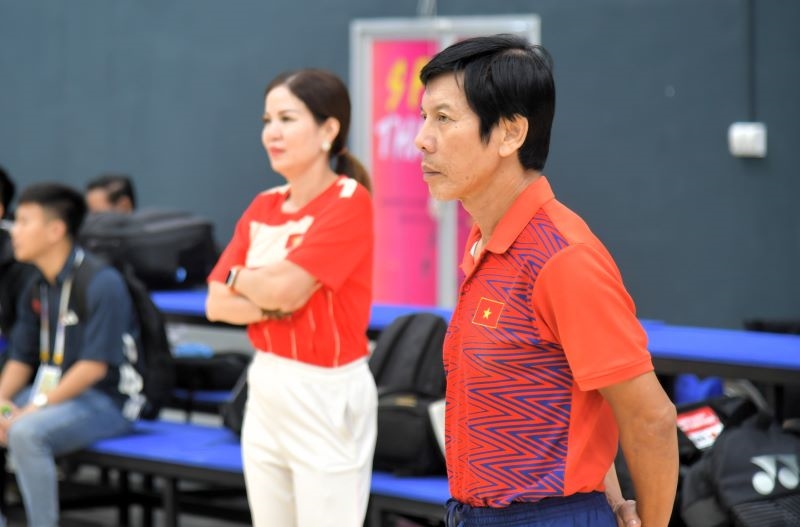 BHL đội Cầu lông chăm chú theo dõi các VĐV tập luyện