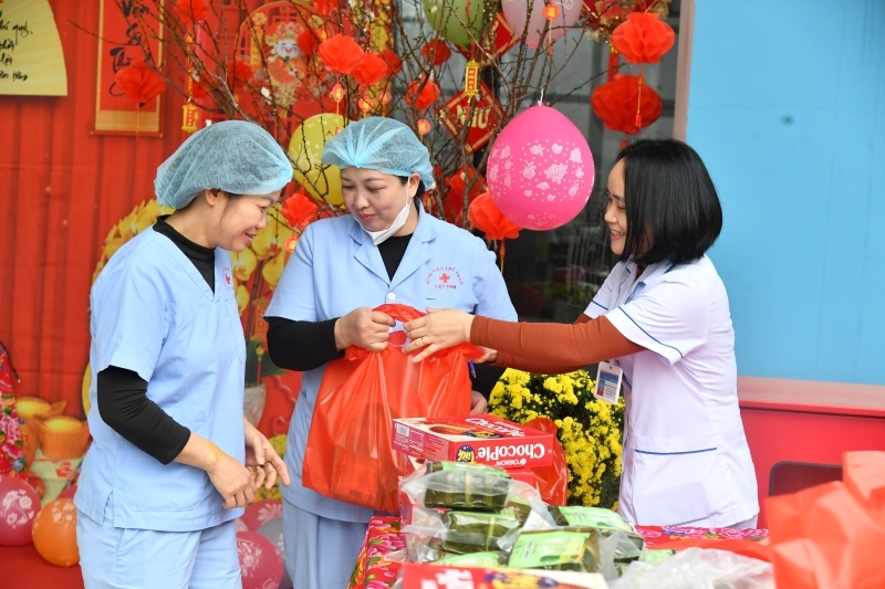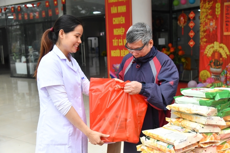 Với các bệnh nhân nội trú, bênh viện đưa quà tặng tới từng phòng.