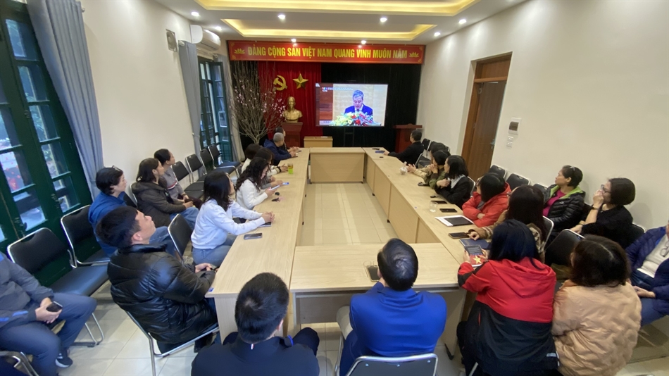 Các đảng viên thuộc chi bộ Trung tâm Thông tin truyền thông TDTT tham dự Hội nghị trực tuyến (ảnh: TD)
