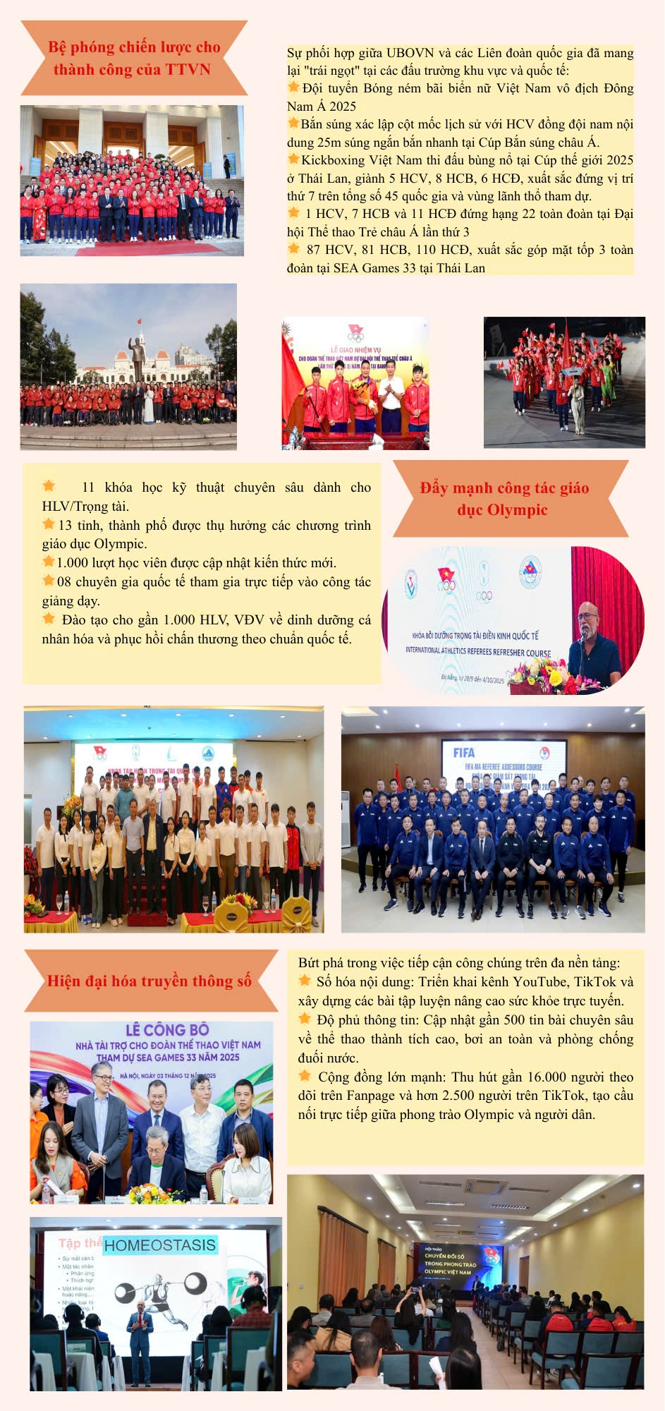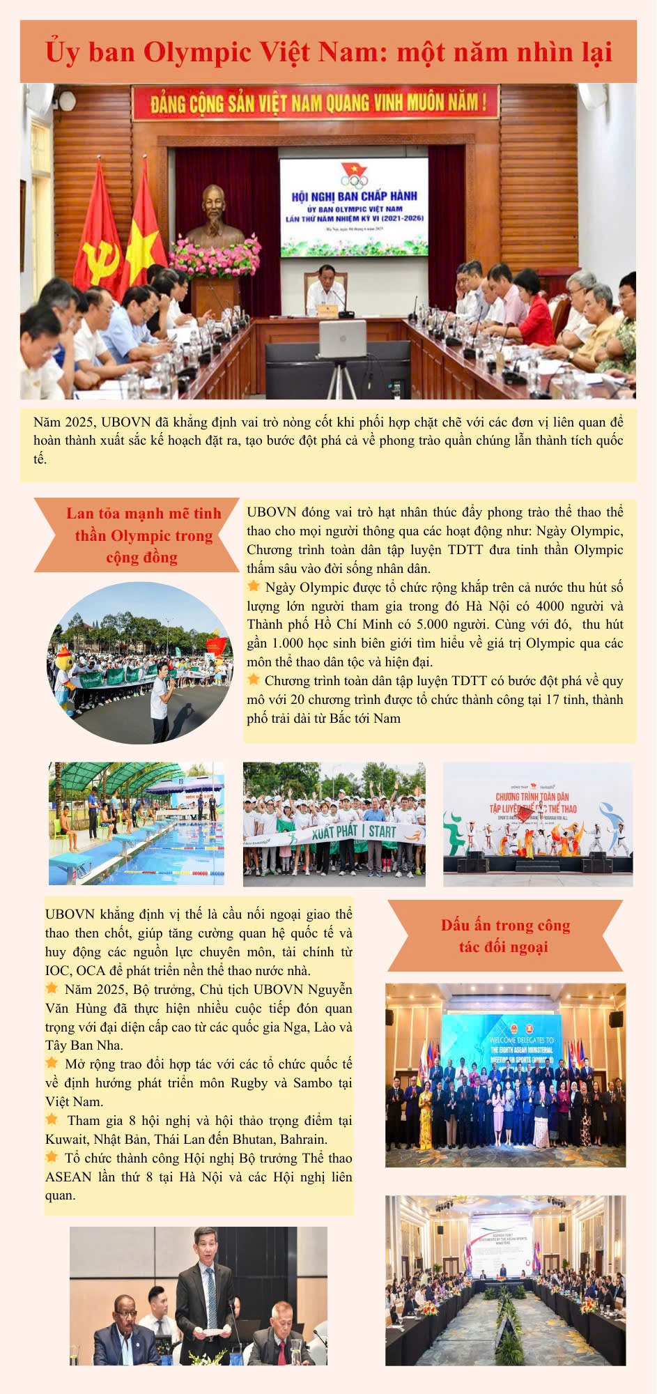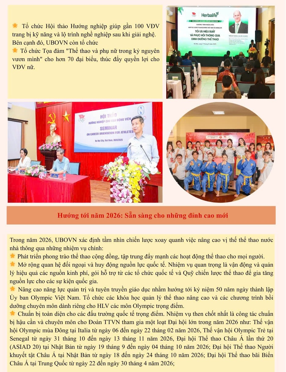 Infographic: Ủy ban Olympic Việt Nam - một năm nhìn lại Hoạt động ngành Tin tức khác 80 năm ngày truyền thống ngành TDTT 19/01/2026 - 07:07 Dưới sự chỉ đạo sát sao của Bộ Văn hóa, Thể thao và Du lịch, Ủy ban Olympic Việt Nam đã khẳng định vai trò nòng cốt khi phối hợp chặt chẽ với các đơn vị liên quan để hoàn thành xuất sắc kế hoạch năm 2025, tạo bước đột phá cả về phong trào quần chúng lẫn thành tích quốc tế. A.T