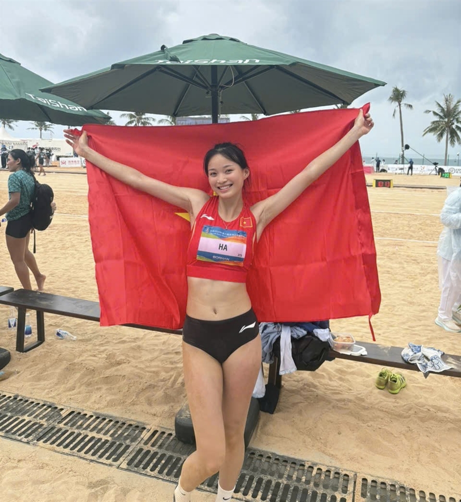 ​Sáng 24/4, ngày thi đấu chính thức thứ hai của Đại hội Thể thao bãi biển châu Á lần thứ 6 (ABG 6), VĐV Hà Thị Thúy Hằng đã xuất sắc mang về 01 HCV cho Đoàn Thể thao Việt Nam ở nội dung nhảy xa nữ.