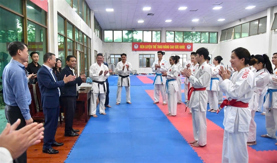During the working session, the Deputy Minister and the delegation visited the 9 national teams participating in this SEA Games who are currently training at the Centre, including: Pencak Silat, Sepak Takraw, Shooting, Archery, Gymnastics, Judo, Karate, Wrestling, and Athletics.