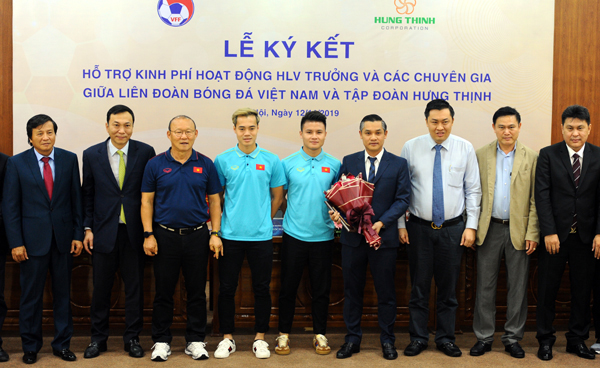 Chia sẻ tại Lễ ký kết, ông Nguyễn Văn Cường - Phó Chủ tịch Tập đoàn Hưng Thịnh cho biết: Trong suốt quá trình hoạt động, bên cạnh việc tập trung cho kinh doanh,Tập đoàn luôn quan tâm tới các chương trình xã hội cộng đồng văn hóa, đặc biệt là các hoạt động thể thao như Bóng đá, Quần vợt... Sự thăng hoa của Bóng đá trẻ Việt Nam đã tạo nguồn cảm hứng lan tỏa trong cộng đồng, HLV Park đã dẫn dắt đội tuyển Việt Nam đạt được những thành tích về chuyên môn và tạo sức mạnh tập thể mang đến những chiến thắng vang dội. Thương hiệu Bóng đá được nâng tầm cao mới. Tập đoàn Hưng Thịnh quyết định đồng hành cùng VFF, hỗ trợ một phần kinh phí, giúp Liên đoàn Bóng đá Việt Nam chi trả lương cho HLV Park Hang Seo và các chuyên gia sẽ góp phần hỗ trợ, chia sẻ phần nào gánh nặng ngân sách nhà nước và giúp Liên đoàn Bóng đá Việt Nam đảm bảo phúc lợi tốt hơn cho ông Park cũng như các chuyên gia trong việc đào tạo Bóng đá trẻ Việt Nam.