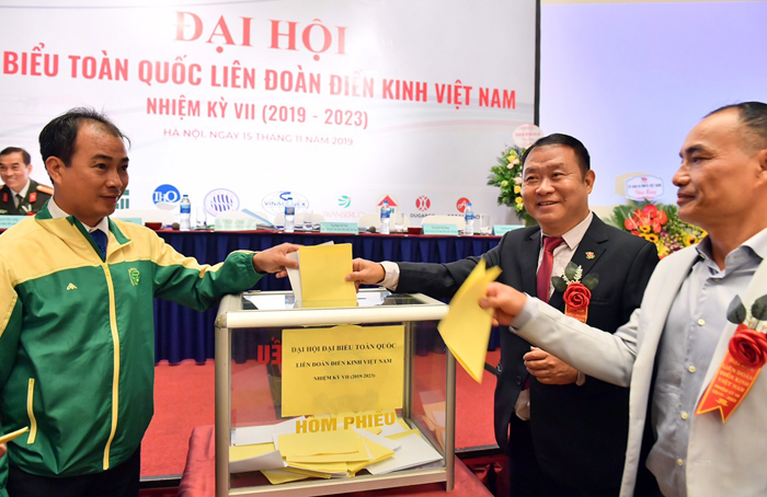 Kết thúc Đại hội, các đại biểu đã nhất trí bầu Ban chấp hành khóa mới với 23 thành viên, trong đó Chủ tịch Liên đoàn Điền kinh Việt Nam khóa 6 nhiệm kỳ 2014-2018 Hoàng Vệ Dũng tiếp tục được tín nhiệm bầu giữ chức Chủ tịch Liên đoàn Điền kinh Việt Nam khóa 7, nhiệm kỳ 2019-2023.