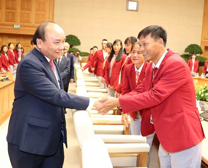 Thủ tướng Nguyễn Xuân Phúc nhấn mạnh: “Những thành tích mà các đội tuyển, vận động viên đạt được đã làm dâng trào niềm vui, niềm tự hào của muôn người dân Việt Nam. Tôi đề nghị các cơ quan chức năng và mong rằng các cá nhân, tổ chức, xã hội tạo điều kiện thuận lợi nhất cổ vũ, động viên, khích lệ và có phần thưởng xứng đáng cho các đội tuyển, vận động viên xuất sắc”,