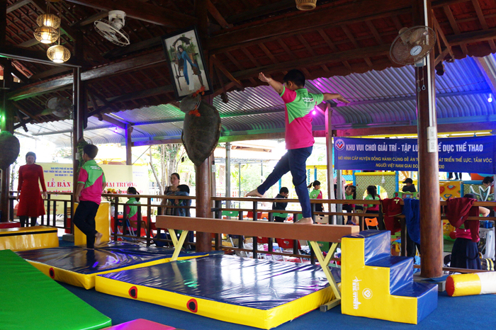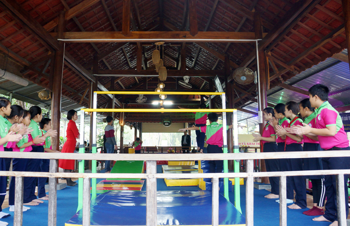 Các em học sinh thích thú với khu tập luyện, vui chơi giải trí