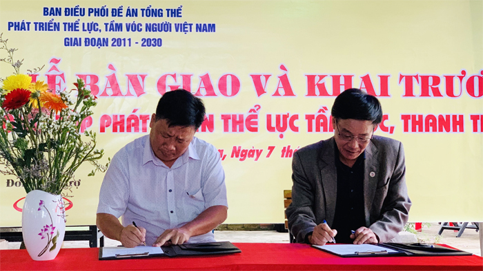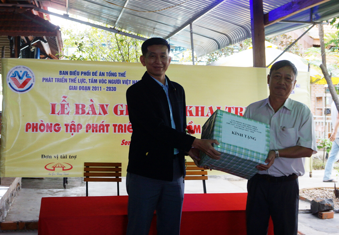 Lãnh đạo Tổng cục TDTT tặng quà cho Phòng GD&ĐT huyện Sơn Hòa