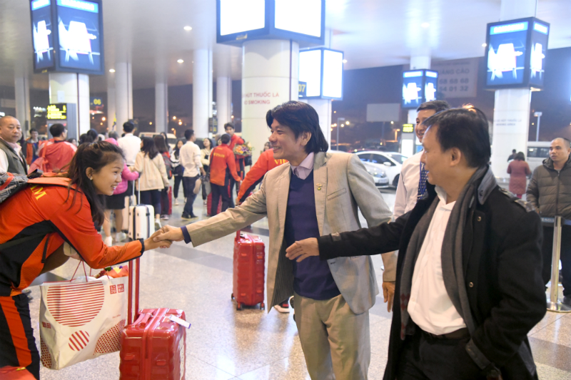 Đại diện lãnh đạo Vụ thể thao thành tích cao đến sân bay chúc mừng thành công của các đội tuyển (Ảnh: Y Trang)