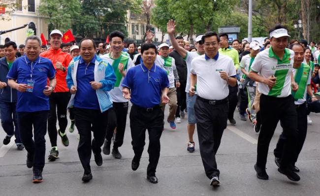 Lãnh đạo ngành cùng đông đảo quần chúng nhân dân hướng ứng Ngày chạy Olympic vì sức khỏe toàn dân (Ảnh: T.A)
