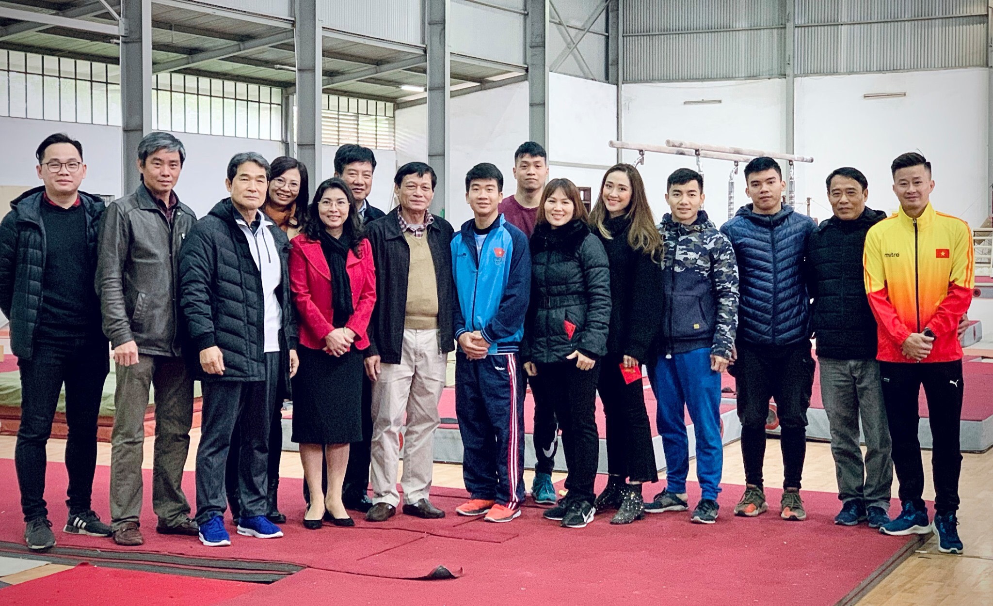 Tới thăm các đội tuyển tại Trung tâm Huấn luyện Thể thao quốc gia và Trung tâm huấn luyện vận động viên cấp cao Hà Nội có Chủ tịch Liên đoàn Thể dục Việt Nam Trần Chiến Thắng, Phó Vụ trưởng Vụ Thể thao thành tích cao 1, Phó Chủ tịch Liên đoàn Thể dục Việt Nam – bà Nguyễn Kim Lan cùng các cán bộ phụ trách môn Thể dục dụng cụ, Aerobic, Khiêu vũ Thể thao của Tổng cục Thể dục Thể thao.