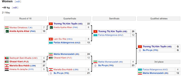 Ngày mai, võ sĩ Trần Thị Ánh Tuyết sẽ bước vào thi đấu gặp đối thủ Jennifer Lay (TLS) ở vòng 16.