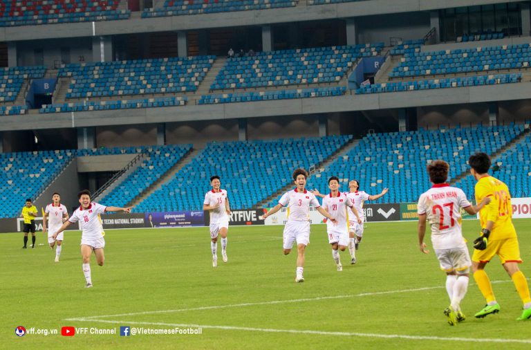 Các cầu thủ U23 Việt Nam trong niềm vui chiến thắng