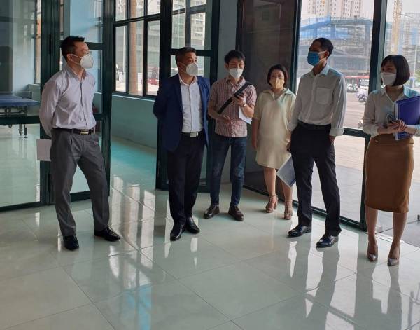 Các thành viên tham dự buổi họp đã kiểm tra hệ thống cơ sở vật chất tại Nhà thi đấu quận Tây Hồ (Ảnh: XT)