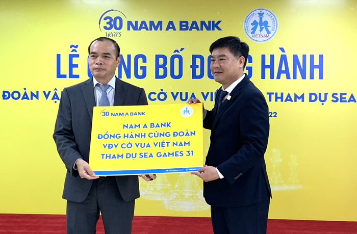 Để thiết thực cổ vũ cho đội tuyển thực hiện mục tiêu 5 HCV, Ngân hàng Nam Á – một đối tác đã có 3 năm liền là nhà tài trợ chính của giải Cờ vua đấu thủ mạnh toàn quốc đã cùng Liên đoàn Cờ Việt Nam đã tổ chức buổi lễ công bố chương trình đồng hành của Ngân hàng Nam Á cho đội tuyển Cờ vua Việt Nam dự SEA Games 31. Sự có mặt đông đủ của Ban lãnh đạo Công đoàn Ngân hàng Việt Nam, ngân hàng Nam Á, Liên đoàn Cờ Việt Nam, Tổng cục TDTT và các cơ quan thông tấn báo chí đã thể hiện sự quan tâm kịp thời và mong cho đội tuyển đạt được mục tiêu đề ra.