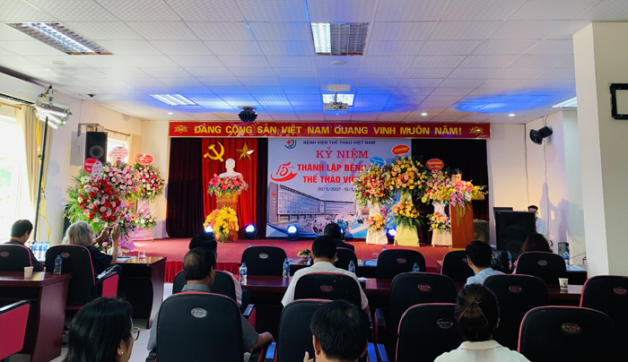 Toàn cảnh buổi lễ kỷ niệm 15 năm thành lập Bệnh viện thể thao Việt Nam (Ảnh: TA)