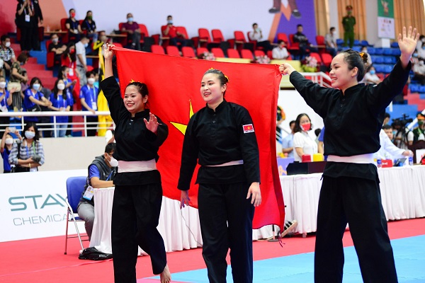 Thể hiện sự vượt trội về đẳng cấp, ba cô gái của Việt Nam đã có màn trình diễn kỹ thuật đẹp mắt và đầy thần thái từ đầu đến hết bài biểu diễn để giành chiến thắng ở chung kết với điểm số 9,965. Bộ ba nữ võ sĩ Brunei nhận điểm 9,915 điểm.