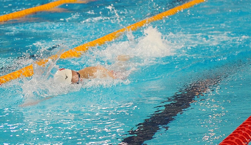 Các tuyển thủ Việt Nam khởi động cho phần thi đấu của môn Bơi tại SEA Games 31