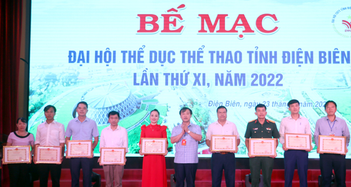Nhân dịp này, UBND tỉnh cũng khen thưởng 11 tập thể, 9 cá nhân có thành tích xuất sắc trong công tác tổ chức đại hội và tham gia Đại hội TDTT tỉnh lần thứ XI, năm 2022.