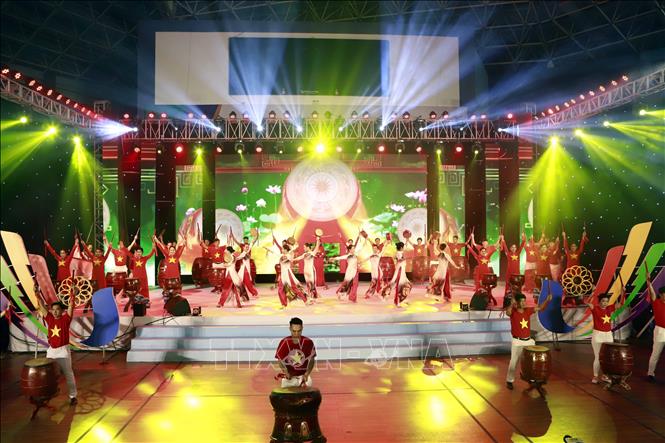 Chương trình nghệ thuật chào mừng các VĐV, HLV, quan chức, phóng viên tham dự môn Muay và môn Gofl tại Vĩnh Phúc (Ảnh: TTXVN)