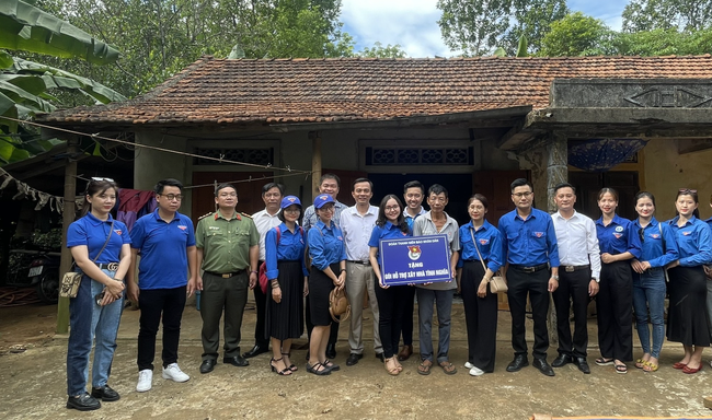 Các đoàn viên tặng quà cho các gia đình anh hùng, thương binh, liệt sỹ,