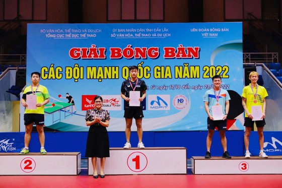Trong khi đó, ở nội dung đồng đội, đội Hà Nội 1 với sự hiện diện Á quân giải vô địch Bóng bàn Đông Nam Á 2022 Nguyễn Anh Tú cùng Đinh Anh Hoàng, Lê Đình Đức đã lần lượt vượt qua các đối thủ Lê Tiến Đạt, Tạ Hồng Khánh, Nguyễn Doãn Thức để giành thắng lợi chung cuộc 3-0 tại trận chung kết.