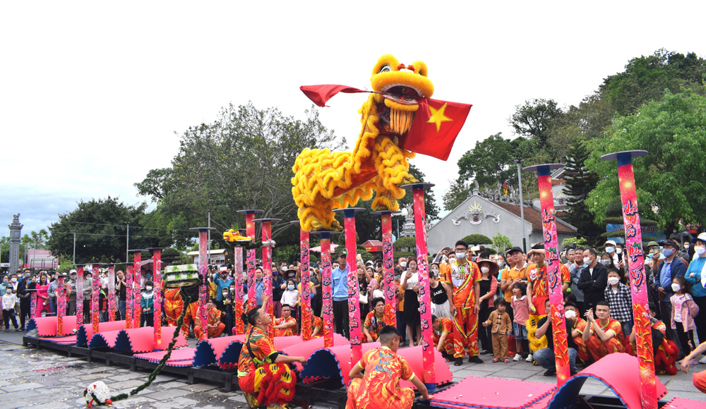 Lân sư rồng là môn thi có số lượng HLV, VĐV tham gia thi đấu đông nhất với 33 VĐV (Ảnh: QuangNinh)