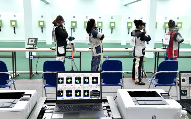 Môn Bắn súng diễn ra tại Trường bắn Trung tâm HLTTQG Hà Nội (Ảnh VDuy)