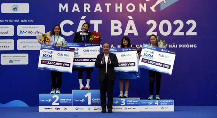 Được biết, tổng giá trị giải thưởng của OneWay Marathon Cát Bà 2022 cho các cự ly 5km, 10km và 21km lên tới gần 500 triệu đồng, cùng nhiều phần quà hấp dẫn khác. Đặc biệt, giải Nhất nữ của các cự ly sẽ bao gồm một chiếc xe máy điện Feliz S trị giá 30 triệu đồng từ Nhà tài trợ Năng lượng xanh VinFast.