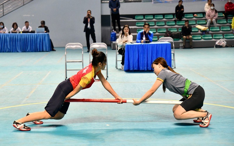 Môn Đẩy gậy tại Đại hội Thể thao toàn quốc lần thứ IX năm 2022 diễn ra trong 3 ngày (10-13/12) với sự tham gia của gần 200 VĐV đến từ 21 tỉnh, thành, ngành trên toàn quốc. Các VĐV thi đấu theo thể thức loại trực tiếp hai lần thua./.