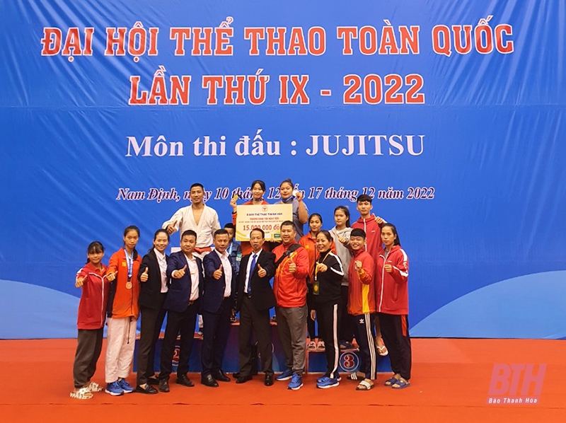 Mặc dù mới được thành lập cách đây 2 năm,nhưng đội tuyển Jujitsu Thanh Hóa đã thi đấu xuất sắc giành 3 HCV, 1 HCĐ tại Đại hội (Ảnh: báo Thanh Hóa)