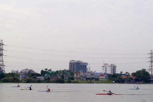 Môn Đua thuyền Canoeing Đại hội Thể thao toàn quốc lần thứ IX vẫn đang diễn ra các trận tranh tài tại Hải Phòng (Ảnh:anhp):