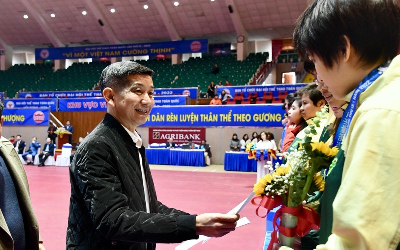 Phó Tổng cục trưởng Tổng cục TDTT Nguyễn Danh Hoàng Việt trao giấy chứng nhận cho các đội giành thành tích cao tại Đại hội