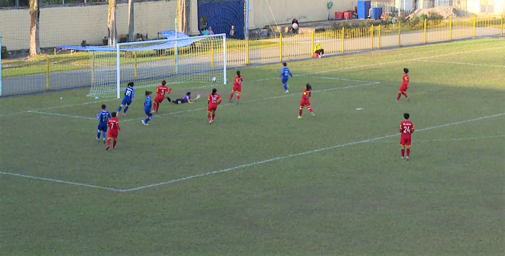 Bàn thắng đẹp mắt của các cầu thủ áo xanh -đội tuyển bóng đá nữ Quảng Ninh (Ảnh:QN)