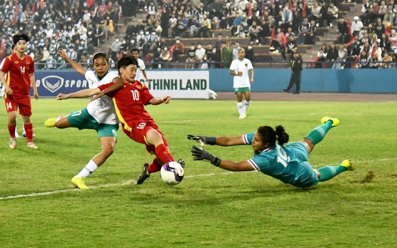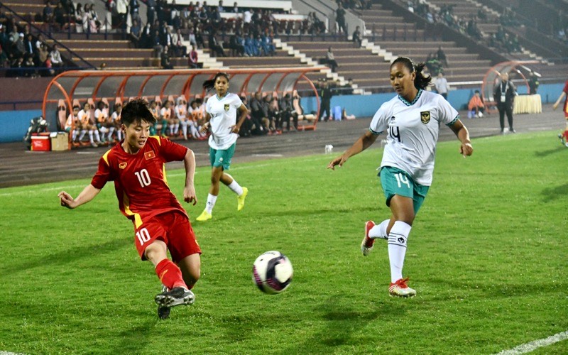 Làm chủ thế trận với lối chơi mạch lạc, tự tin, các cô gái đội tuyển Việt Nam liên tiếp có những đường truyền đẹp mặt với những cú sút bóng đầy điểm hóc về phía khung thành đối phương. Nhưng pha bóng đó đã được chuyển hóa bằng bàn thắng thứ 3 ở phút thứ 36 do công của cầu thủ Vũ Thị Hoa khi sút thành công quả penalty. Tỷ số 3 – 0 là kết quả cuối cùng của trận đấu.