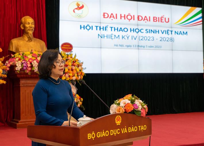 Phát biểu tại Đại hội trên cương vị Chủ tịch Hội thể thao học sinh Việt Nam, Thứ trưởng Ngô Thị Minh mong muốn các đồng chí Ủy viên Ban Chấp hành tăng cường và phát huy hơn nữa tinh thần đoàn kết, nỗ lực thực hiện thắng lợi các mục tiêu, nhiệm vụ mà Nghị quyết Đại hội nhiệm kỳ IV đã đề ra.