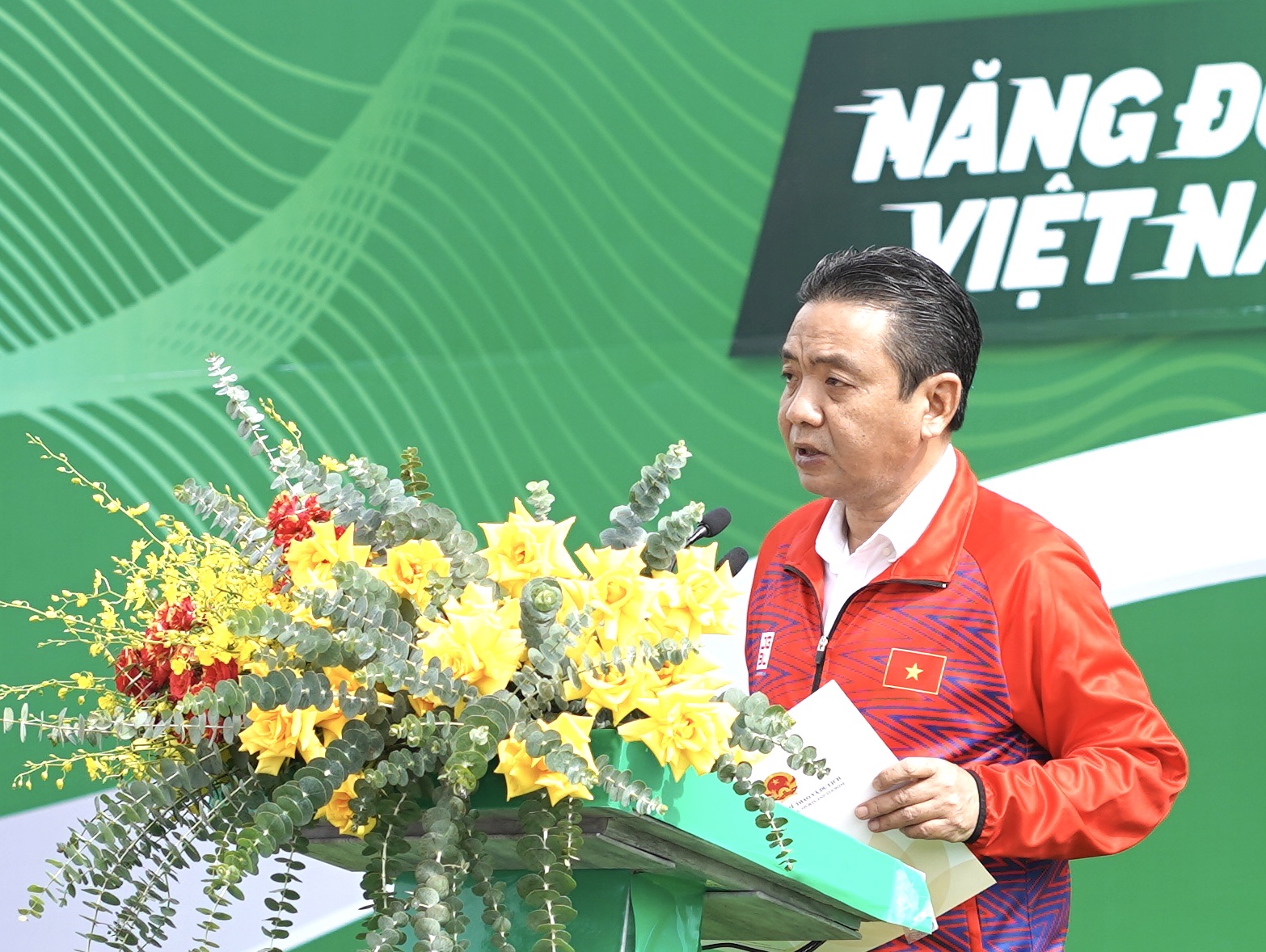 Tham dự có ông Hoàng Đạo Cương - Thứ trưởng Bộ VHTTDL, ông Nguyễn Hồng Minh - Phó Tổng cục trưởng Tổng cục TDTT, ông Trần Văn Hiệp - Chủ tịch UBND tỉnh Lâm Đồng, ông Nguyễn Trung Kiên - Giám đốc Sở VHTTDL tỉnh Lâm Đồng cùng đại diện lãnh đạo các vụ, đơn vị trực thuộc.