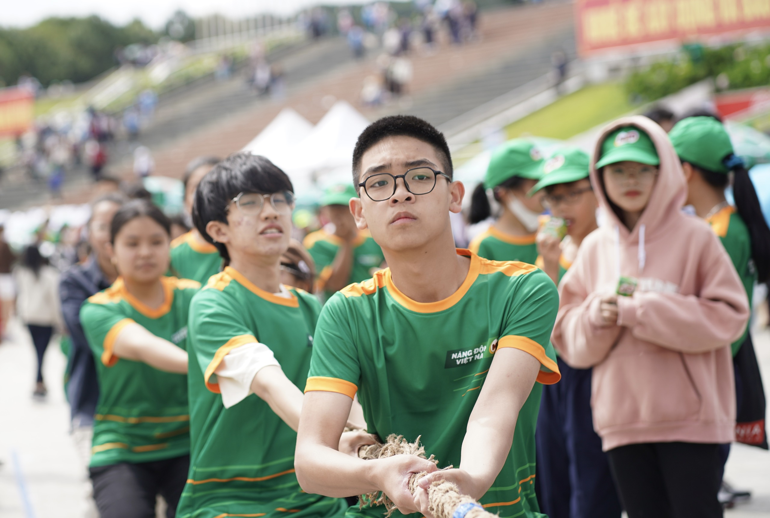 Các em học sinh thích thú khi tham gia các hoạt động hưởng ứng như kéo co...
