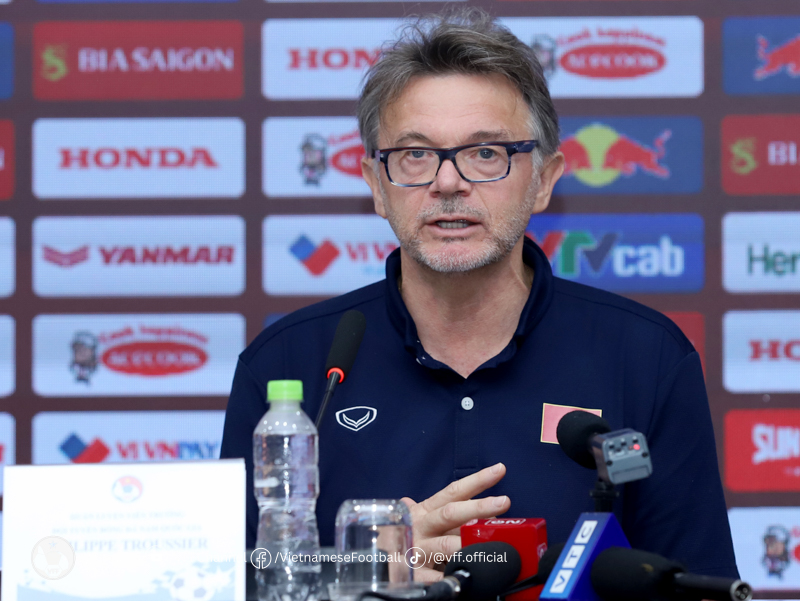 HLV Philippe Troussier trả lời báo chí tại buổi họp báo (Ảnh: VFF)