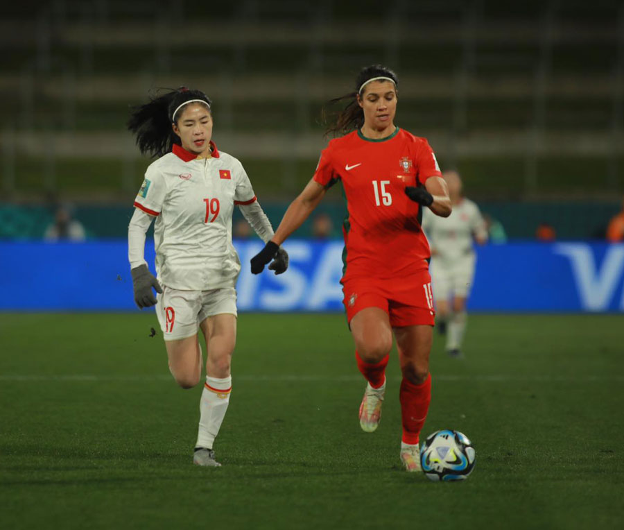 Ngay những phút đầu tiên nhập cuộc, tuyển Việt Nam mang khát vọng chiến thắng đầu tiên ở World Cup, đội tuyển nữ Việt Nam chọn lối chơi tấn công trước Bồ Đào Nha. Tuy nhiên, đoàn quân của HLV Mai Đức Chung chỉ gây được bất ngờ trong vài phút ngắn ngủi đầu trận. Việc tuyển Việt Nam dâng đội hình lên quá cao đã tạo ra những sơ hở lớn nơi hàng thủ, để Bồ Đào Nha khai thác liên tục.