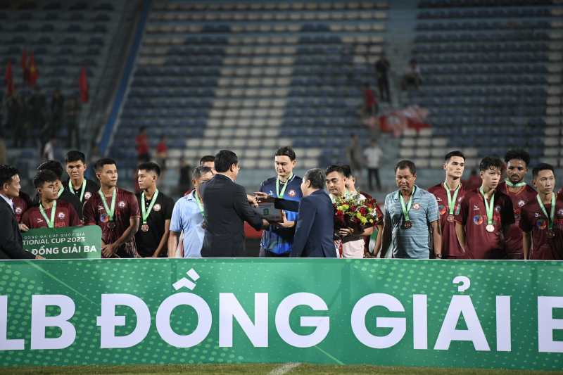 BTC trao giải cho đội TopenLand Bình Định giành HCĐ mùa giải năm nay trên sân Hàng Đẫy, Hà Nội (Ảnh:VTC)