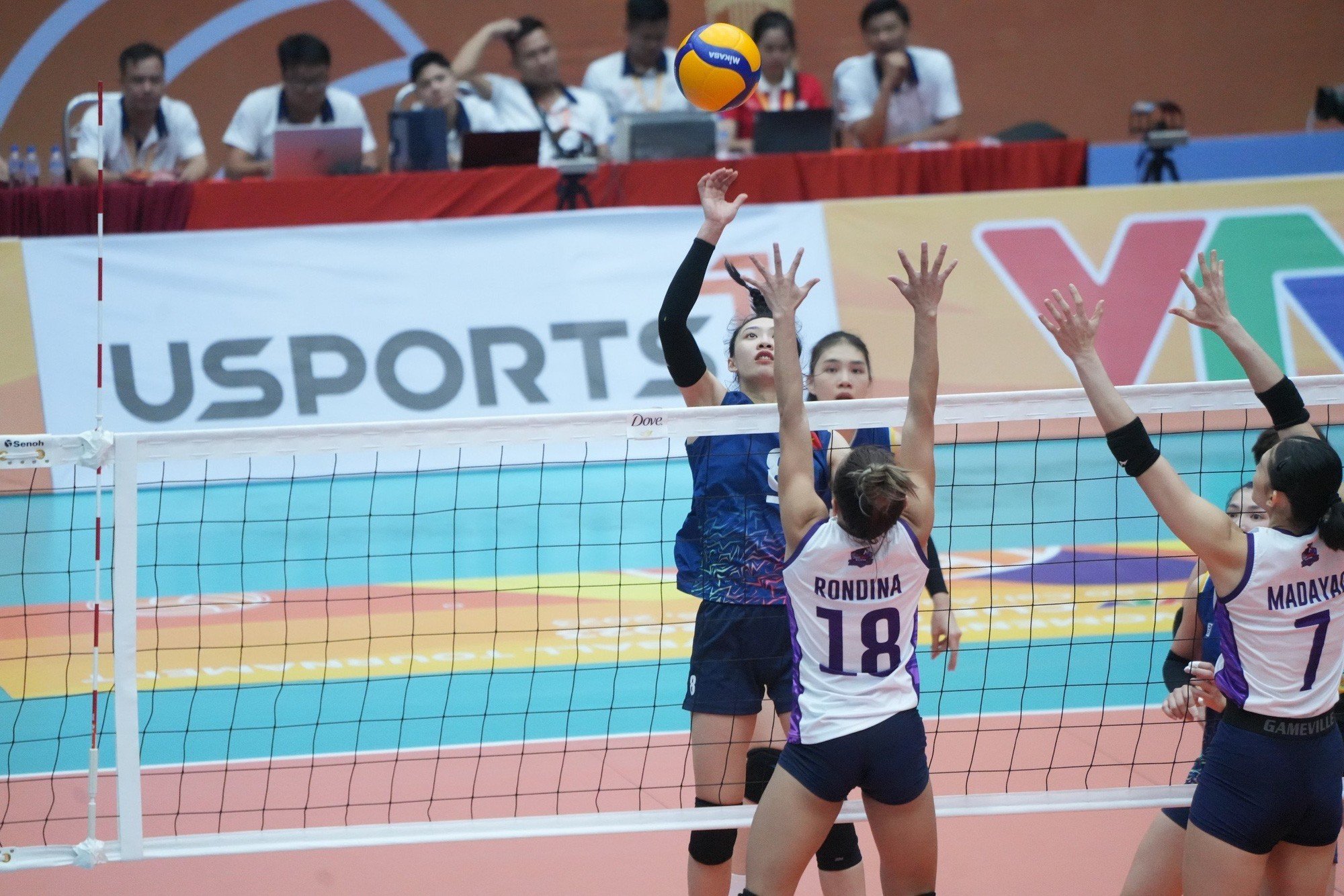 Tuy nhiên, các cô gái Việt Nam 2 lại chơi chùng xuống ở set 2. Họ mắc nhiều lỗi và cũng không có nhiều tình huống chắn bóng tốt. Trong khi đó phía đối diện, tay đập Rondina chơi rất hay đã giúp đội bóng đến từ Philippines giành chiến thắng 25/18, cân bằng tỷ số 1-1.