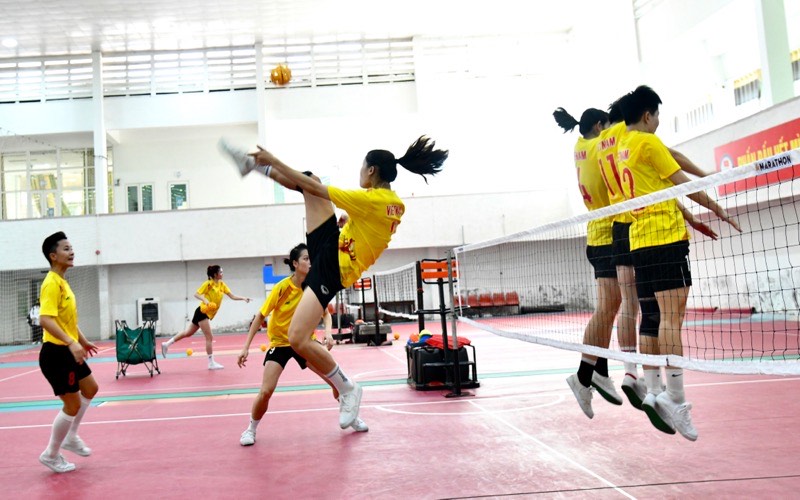 Đội tuyển Cầu mây nữ Việt Nam tích cực tập luyện với cường độ cao (Ảnh: Văn Duy)
