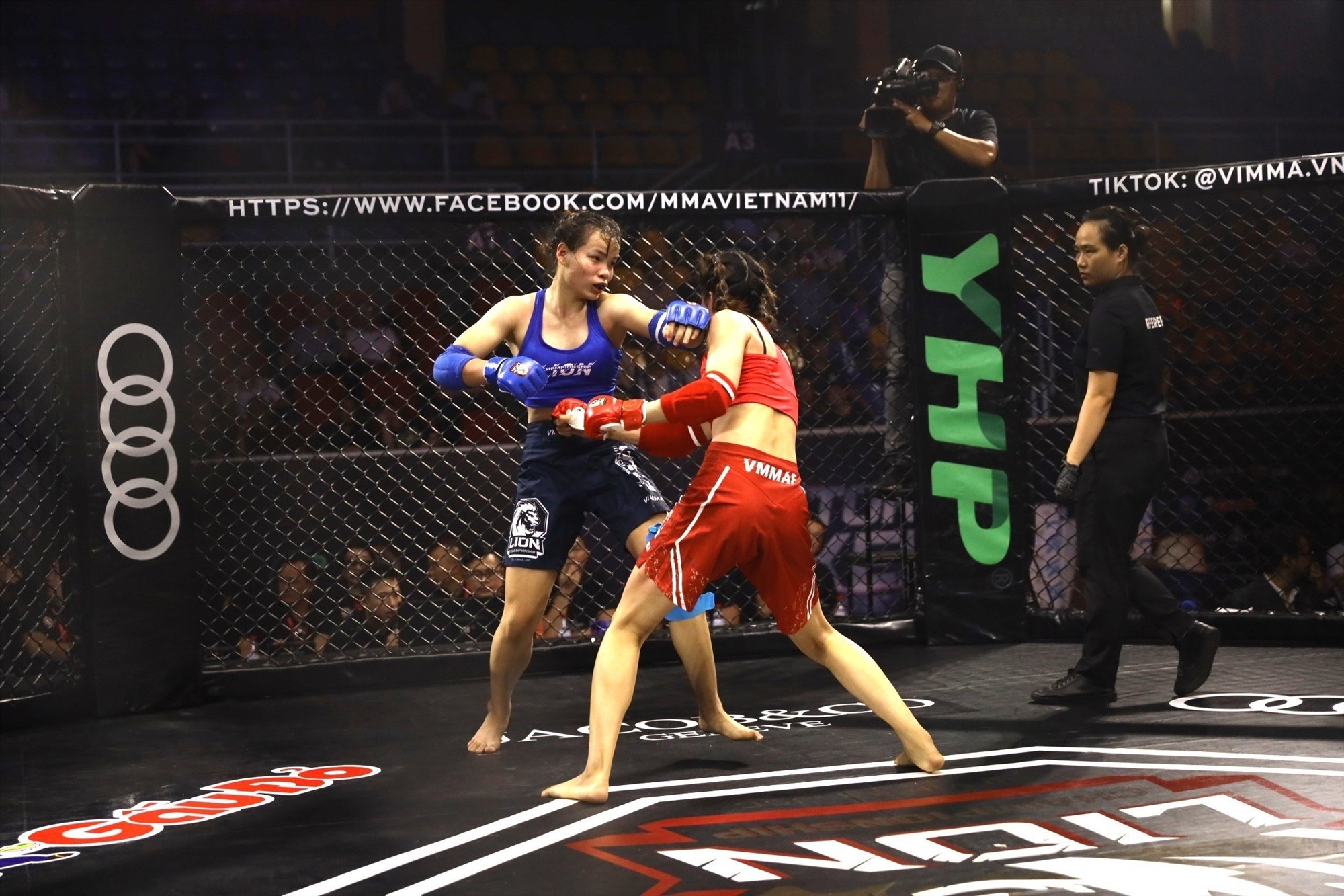 Võ sĩ Trần Trà My (xanh) thắng Nguyễn Thị Hương