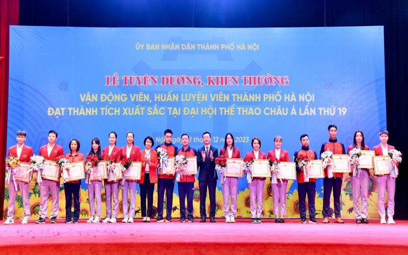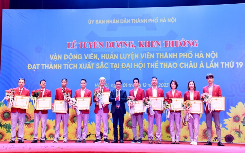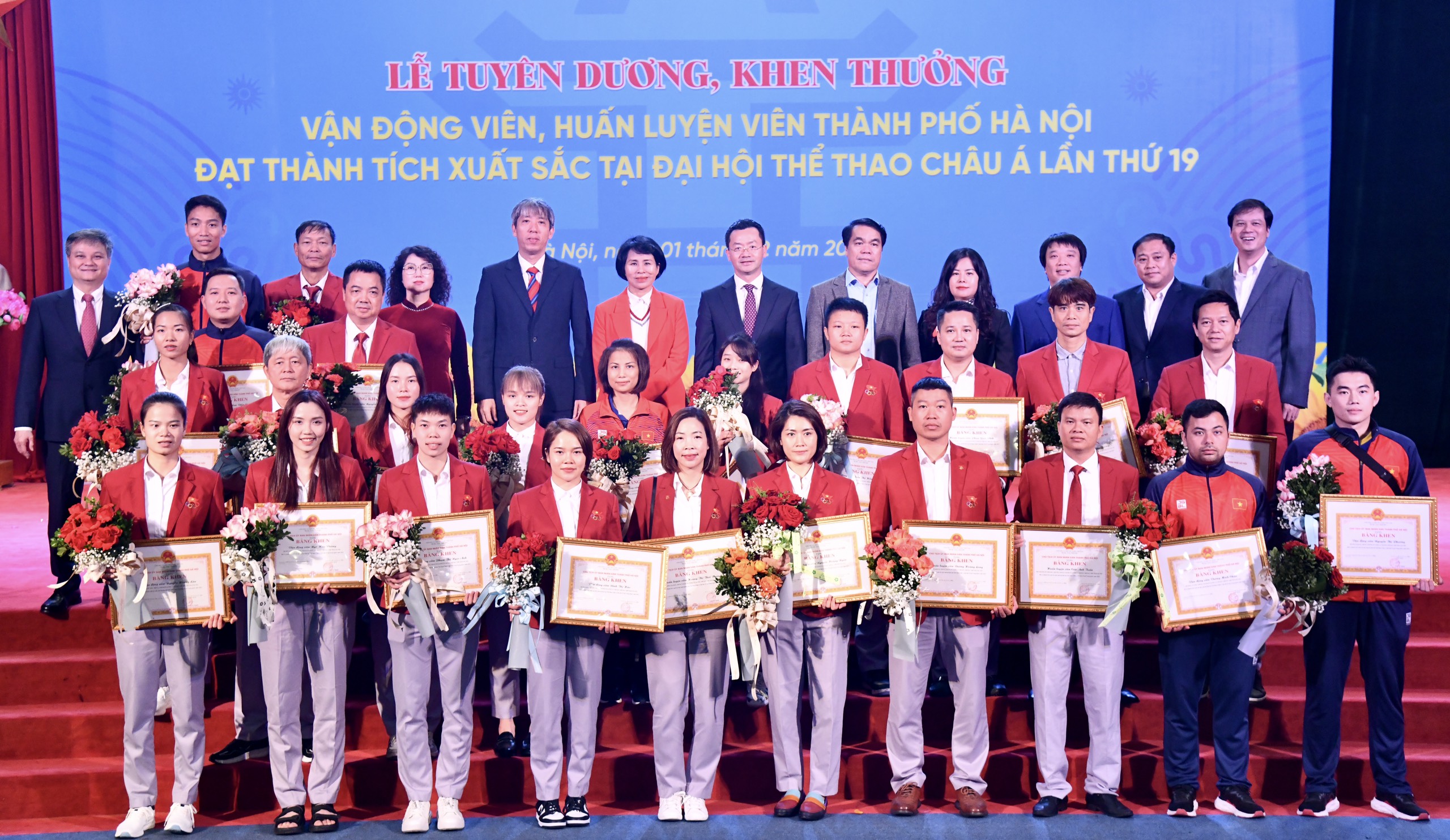 Dịp này, UBND Thành phố Hà Nội đã trao 27 Bằng khen cho các HLV, VĐV có thành tích xuất sắc tại ASIAD 19.