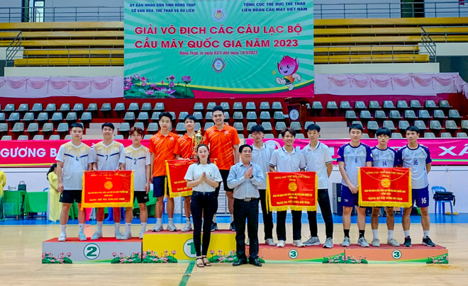 Các VĐV đội tuyển Cầu mây Yên Bái giành Huy chương Bạc nội dung đôi nam tại Giải vô địch các CLB Cầu mây quốc gia năm 2023 (Ảnh: Sở VHTTDL Yên Bái)