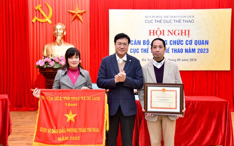 Nhân dịp này, Cục trưởng Đặng Hà Việt đã trao Cờ thi đua cho Phòng Tổ chức cán bộ - đơn vị dẫn đầu trong phong trào thi đua và danh hiệu tập thể Lao động xuất sắc năm 2023 cho Trung tâm Thể thao Ba Đình.